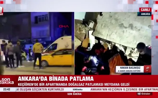 Patlama sonrası yangın çıktı bölgeye. İlk bilgilere göre patlama doğal gaz kaynaklı. Ankarada korkutan patlama.